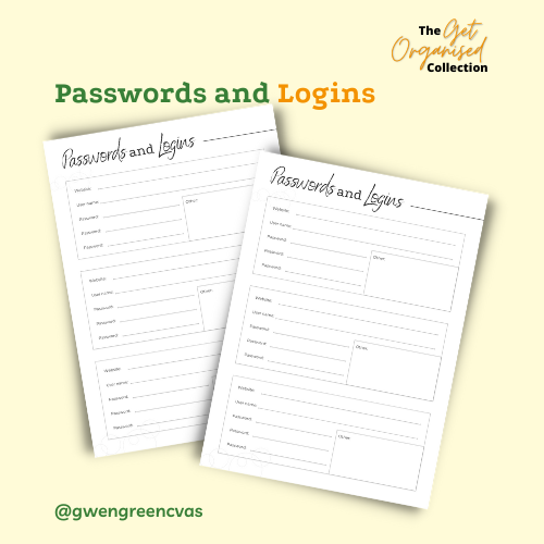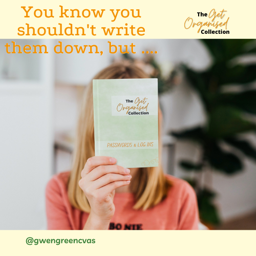 You know you shouldn’t write them down, but we all do it, so why not write them in a dedicated book. Just remember to put it away somewhere safe!